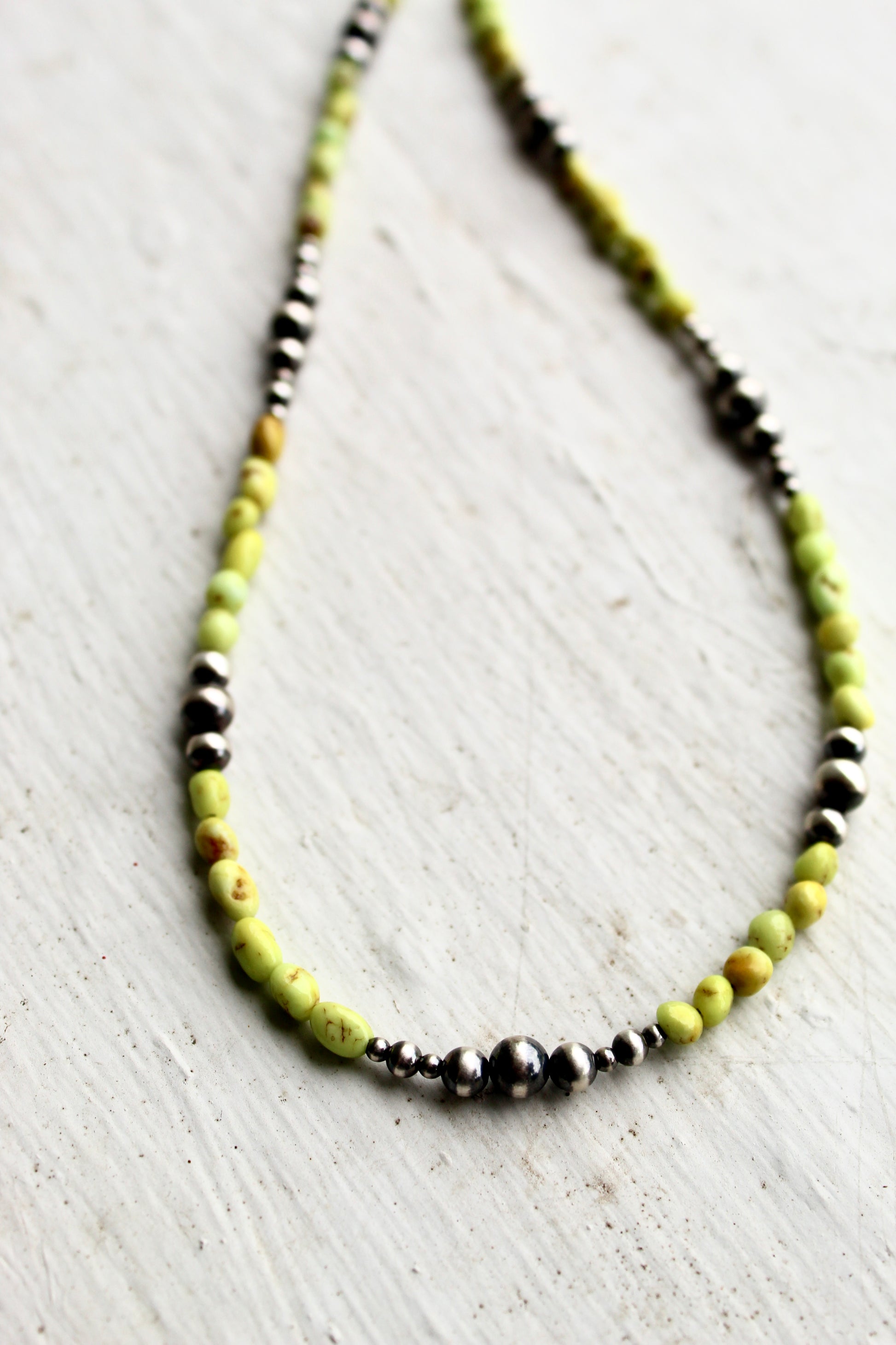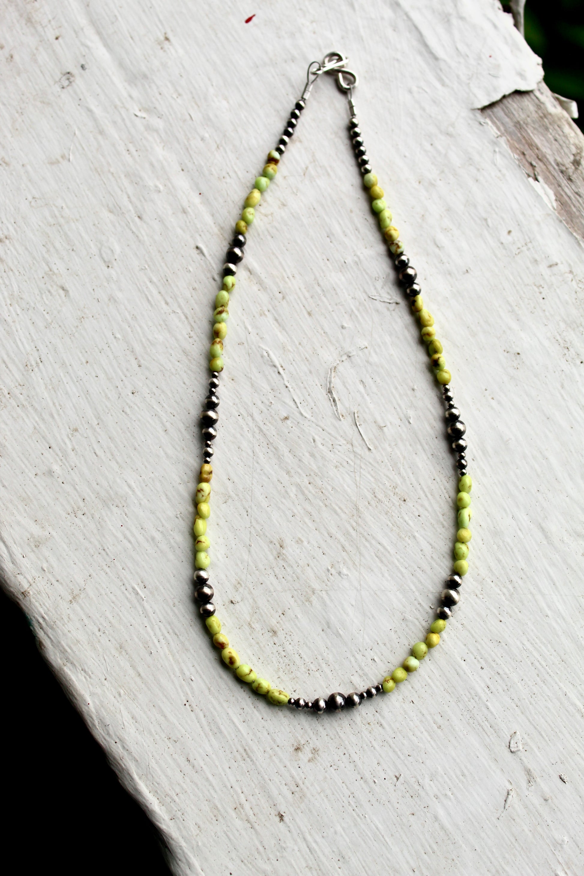16” Palomino Variscite with a variation of 2mm-6mm sterling silver pearls