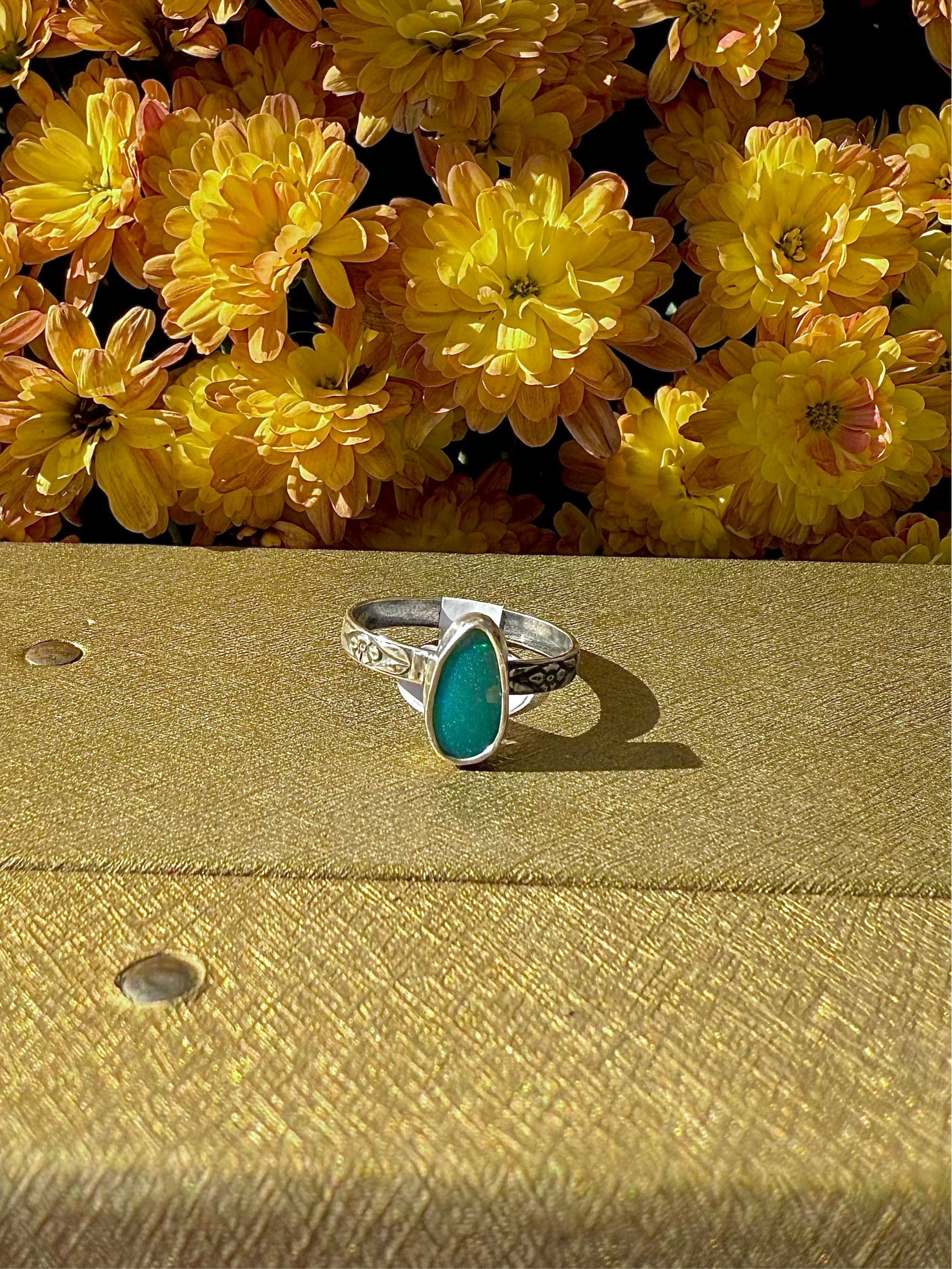 Coober Pedy Opal set on a floral accent band